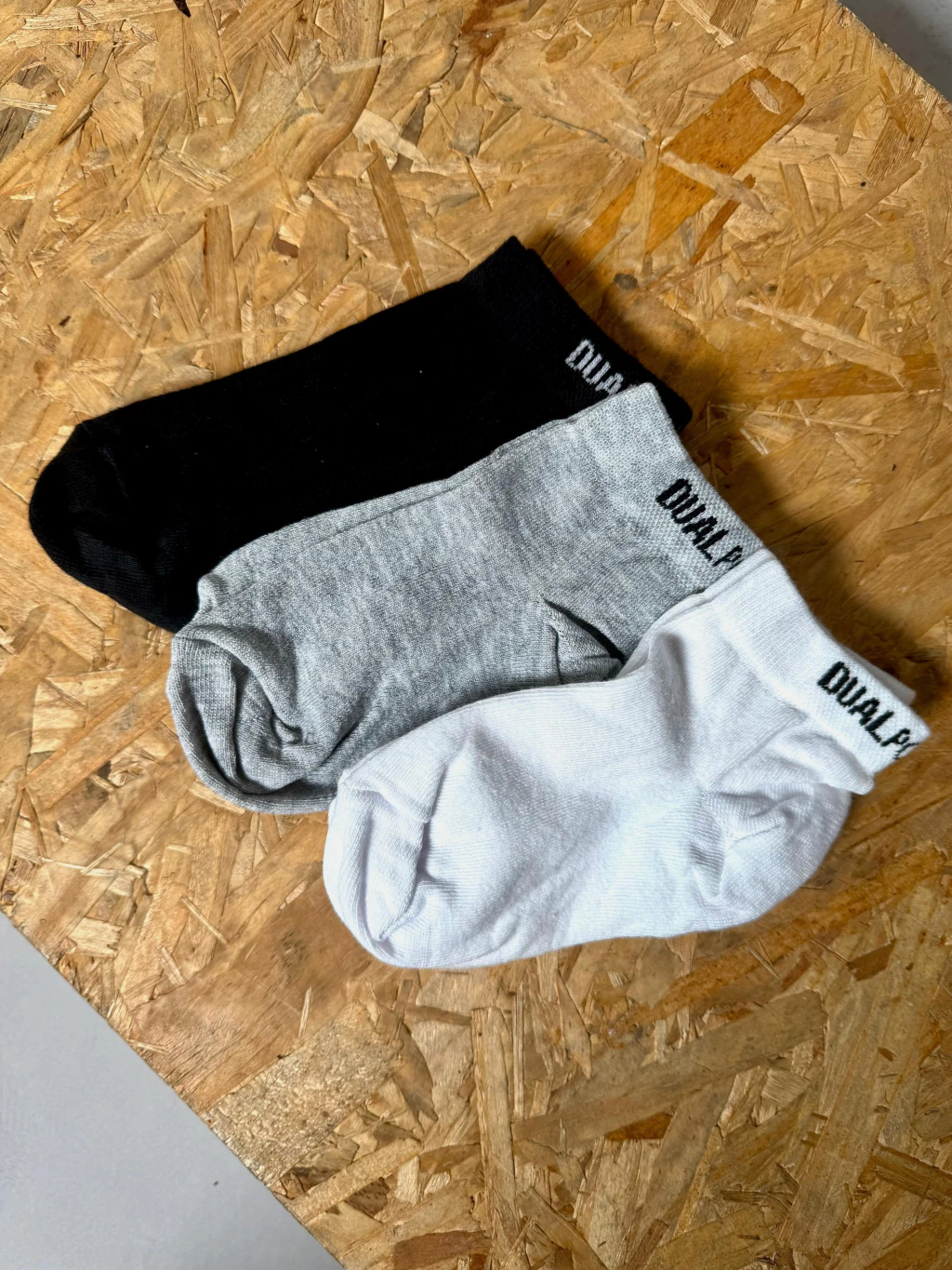 Medias tipo soquete confeccionadas en algodón soft con mezcla de fibras sintéticas para mayor resistencia y control de humedad. Su estructura compacta brinda comodidad y evita deslizamientos dentro del calzado. Presentan puño suave que sostiene sin presionar y detalle jacquard con la marca en el borde. Ideales para running, gym o uso urbano.
